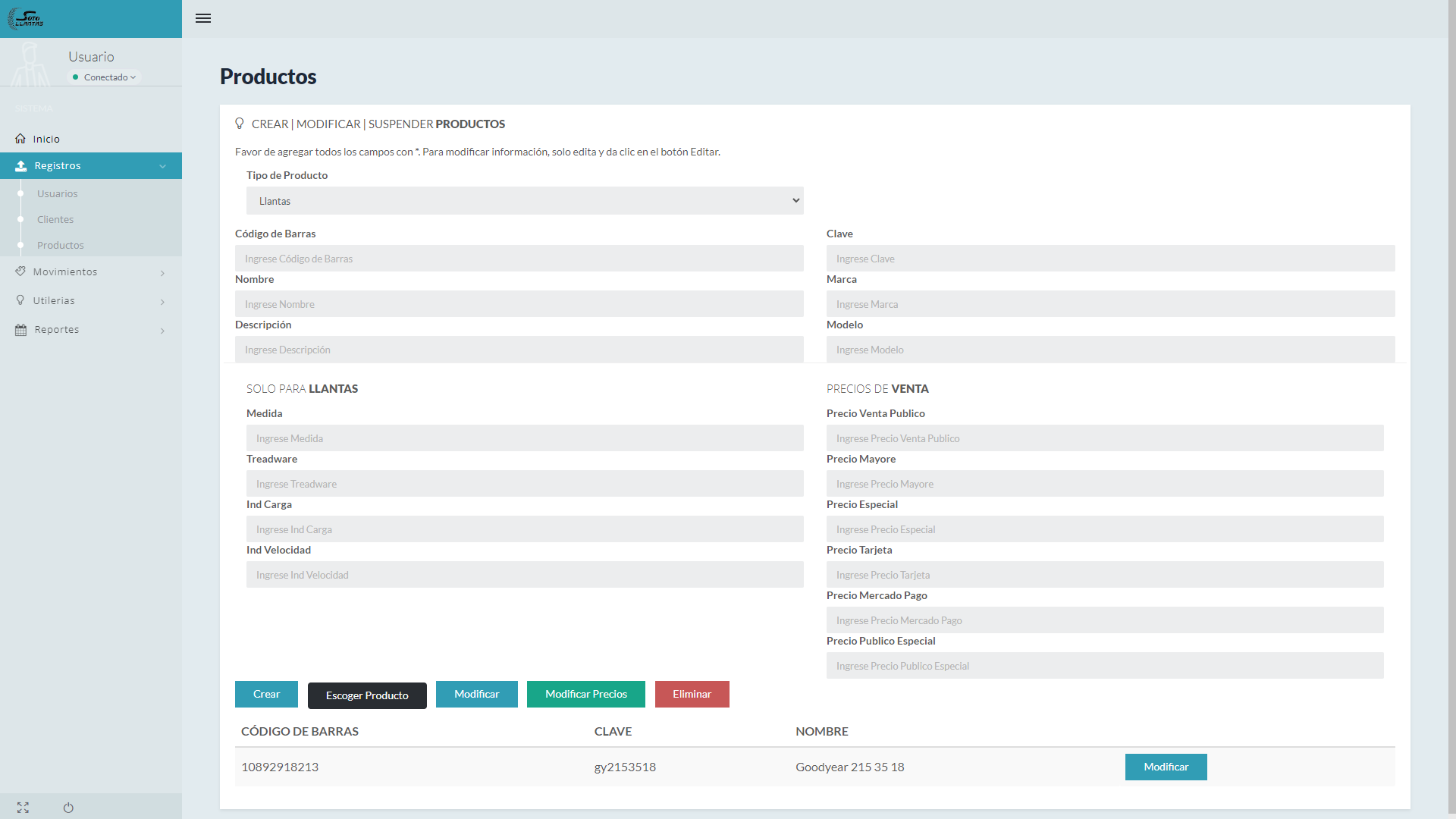 Llantas - Sistema Administrativo