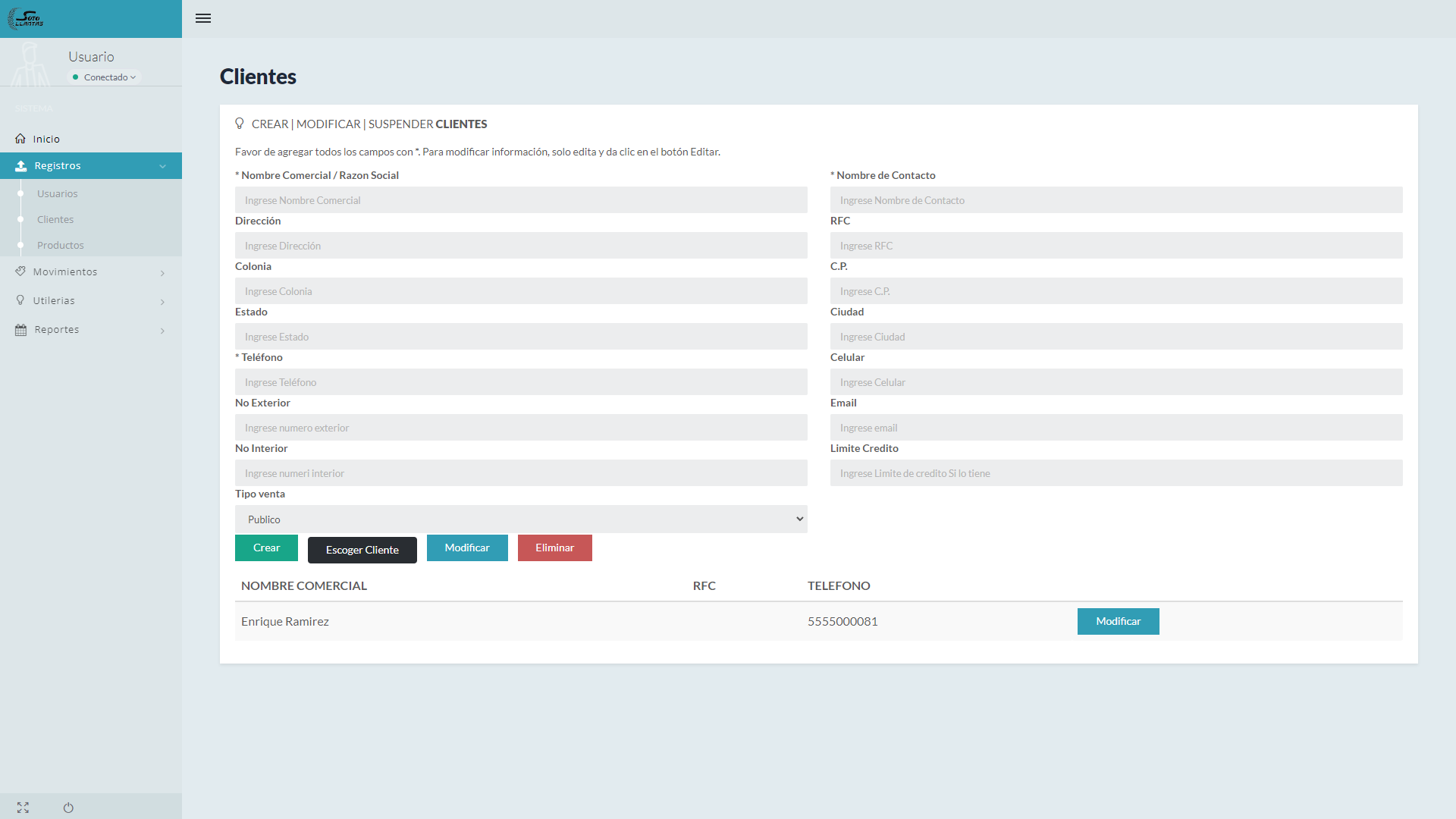 Sistema general. Clientes, productos, punto de venta, almacenes, facturacion, reportes, cotizaciones, avisos de mercancia, credito y cobranza, corte caja, entrada y salida de mercancia.