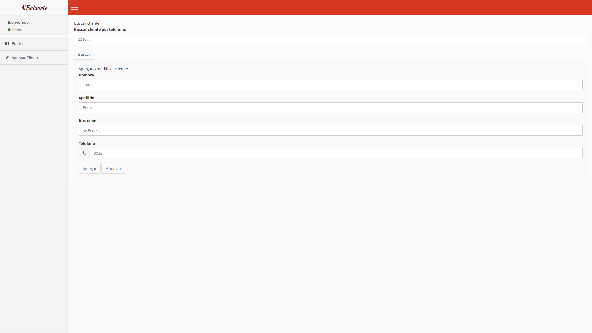 Sistema de puntos para clientes. Uso de puntos para descuentos.